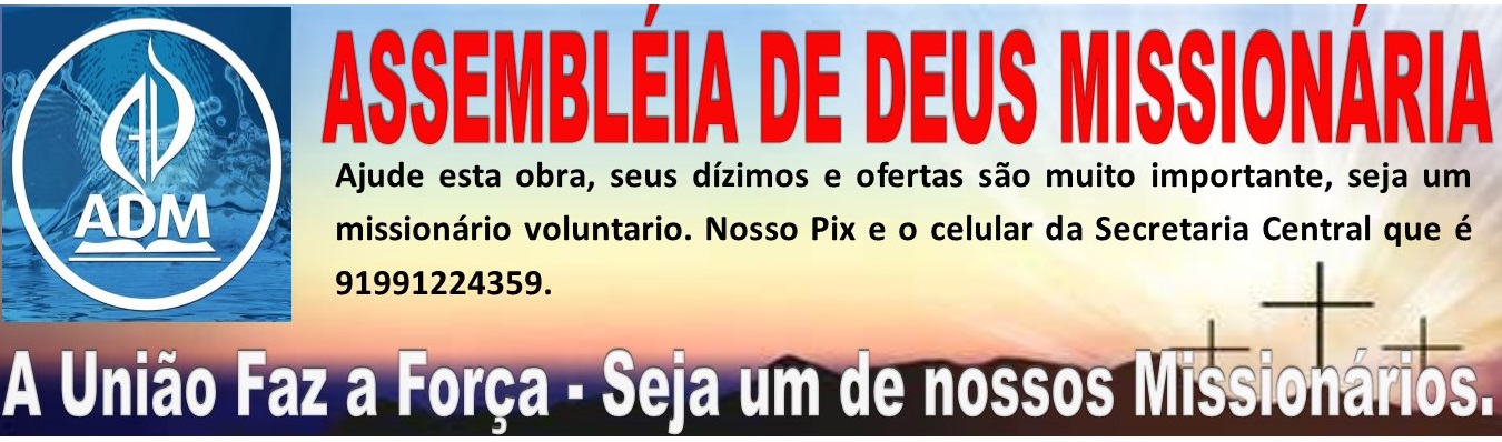 Seus dízimos e suas ofertas e muito importante para ajudar uma obra Missionária. Nosso Pix e: 91991224359 sua oferta de amor e muito importante.